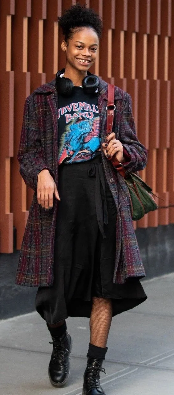 This style is all about making a statement. Edgy fashion often combines leather, studs, and bold prints, with outfits that might include band tees, ripped jeans, and combat boots.