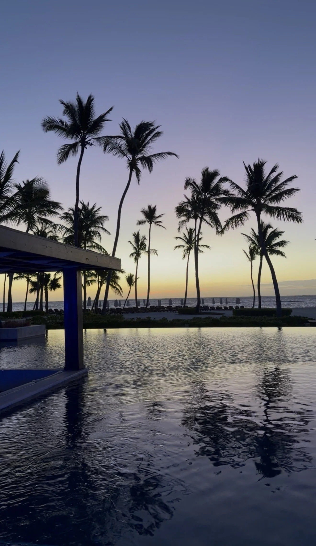 The resort has multiple pools, including a large infinity pool overlooking the ocean. We usually sat at the pool closest to the beach, and we were always able to find chairs there (the night before 🤫) Like many resorts, some guests go out early in the morning to reserve chairs. However, the beach had plenty of seating, so finding chairs there was much easier.